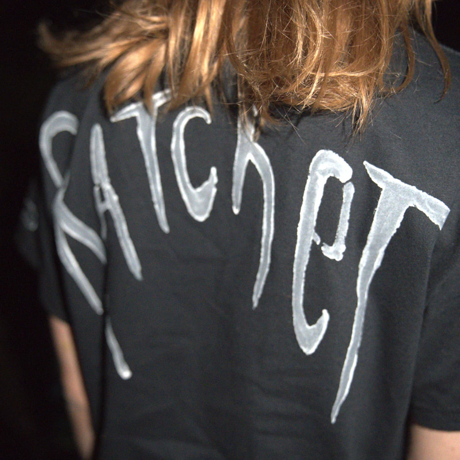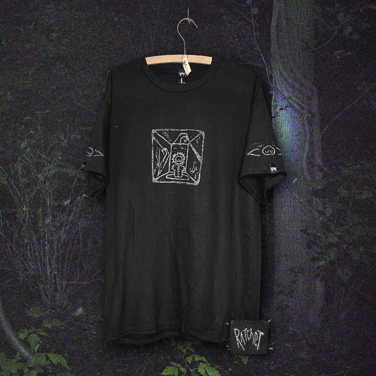 Limited edition: Ratchet's handcrafted and uniquely designed T-shirt! A one-of-a-kind black 'heavy cotton' T-shirt that can withstand almost any situation! It features an O-neck fit with both Ratchet's signature logo and a unique design. Note: No special laundry needs, but the overall fit will remain longer with 30°C washes!