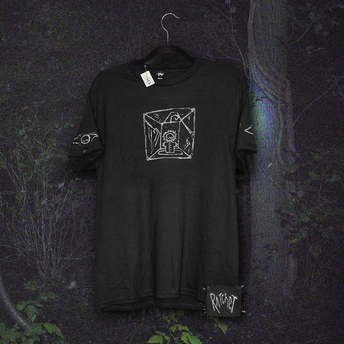 Limited edition: Ratchet's handcrafted and uniquely designed T-shirt! A one-of-a-kind black 'heavy cotton' T-shirt that can withstand almost any situation! It features an O-neck fit with both Ratchet's signature logo and a unique design. Note: No special laundry needs, but the overall fit will remain longer with 30°C washes!