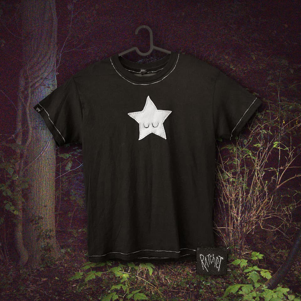 Limited edition: Ratchet's handcrafted and uniquely designed star T-shirt! A one-of-a-kind black 'heavy cotton' T-shirt that can withstand almost any situation! It features an O-neck fit with both Ratchet's signature star design and logo. Decorated with unique stitched patterns around the neck, sleeves, and hem to add a touch of Ratchet’s craftsmanship. Note: No special laundry requirements, but washing at 30°C and ironing will help preserve the fit longer.