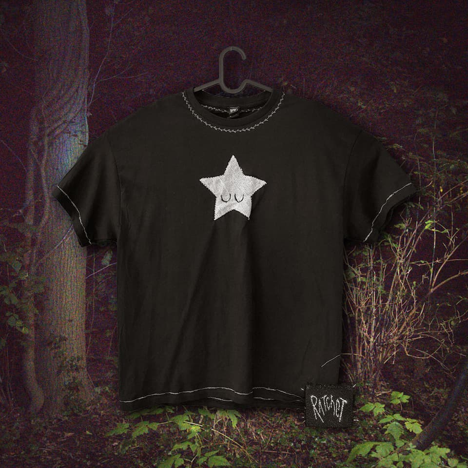 Limited edition: Ratchet's handcrafted and uniquely designed star T-shirt! A one-of-a-kind black 'heavy cotton' T-shirt that can withstand almost any situation! It features an O-neck fit with both Ratchet's signature star design and logo. Decorated with unique stitched patterns around the neck, sleeves, and hem to add a touch of Ratchet’s craftsmanship. Note: No special laundry requirements, but washing at 30°C and ironing will help preserve the fit longer.