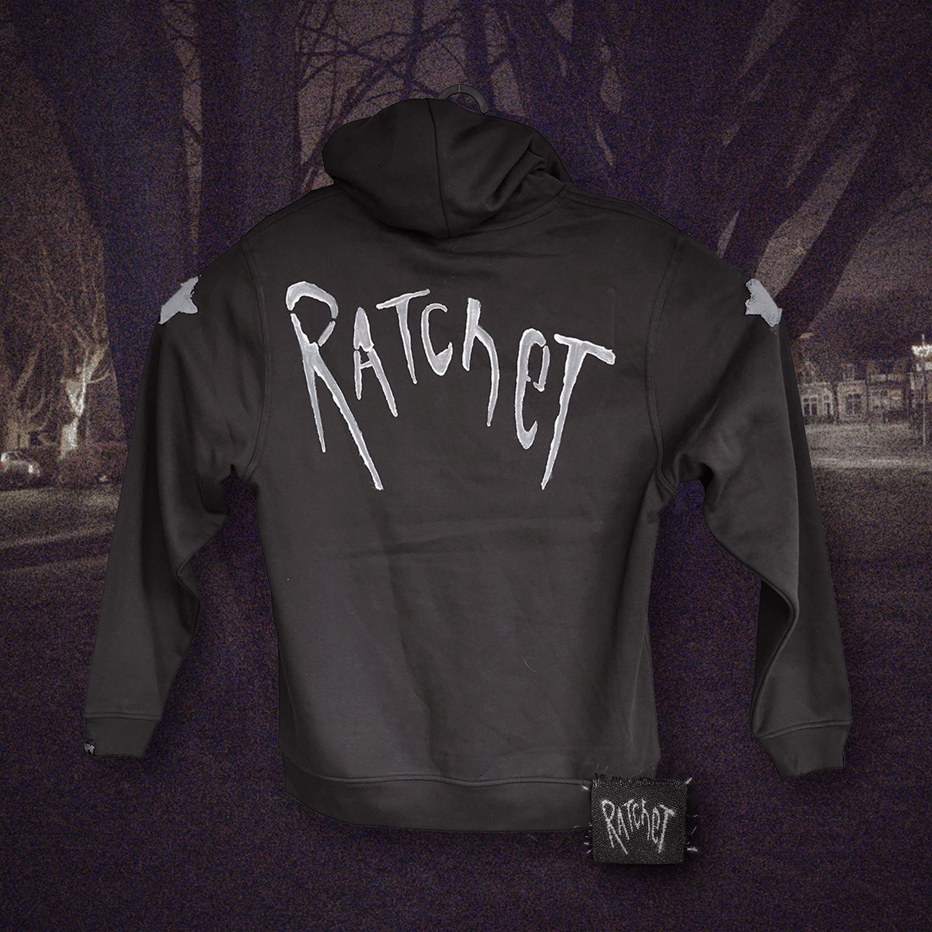 Limited edition: Ratchet's handcrafted and uniquely designed Hand Hoodie! A one-of-a-kind black 'heavy cotton' Hoodie that can withstand almost any situation! It features an O-neck fit with both Ratchet's signature star design and logo. Decorated with unique stitched stars on the sleeves, ratchet on the back, and with a touch of Ratchet’s craftsmanship. Note: No special laundry requirements, but washing at 30°C and ironing will help preserve the fit longer.