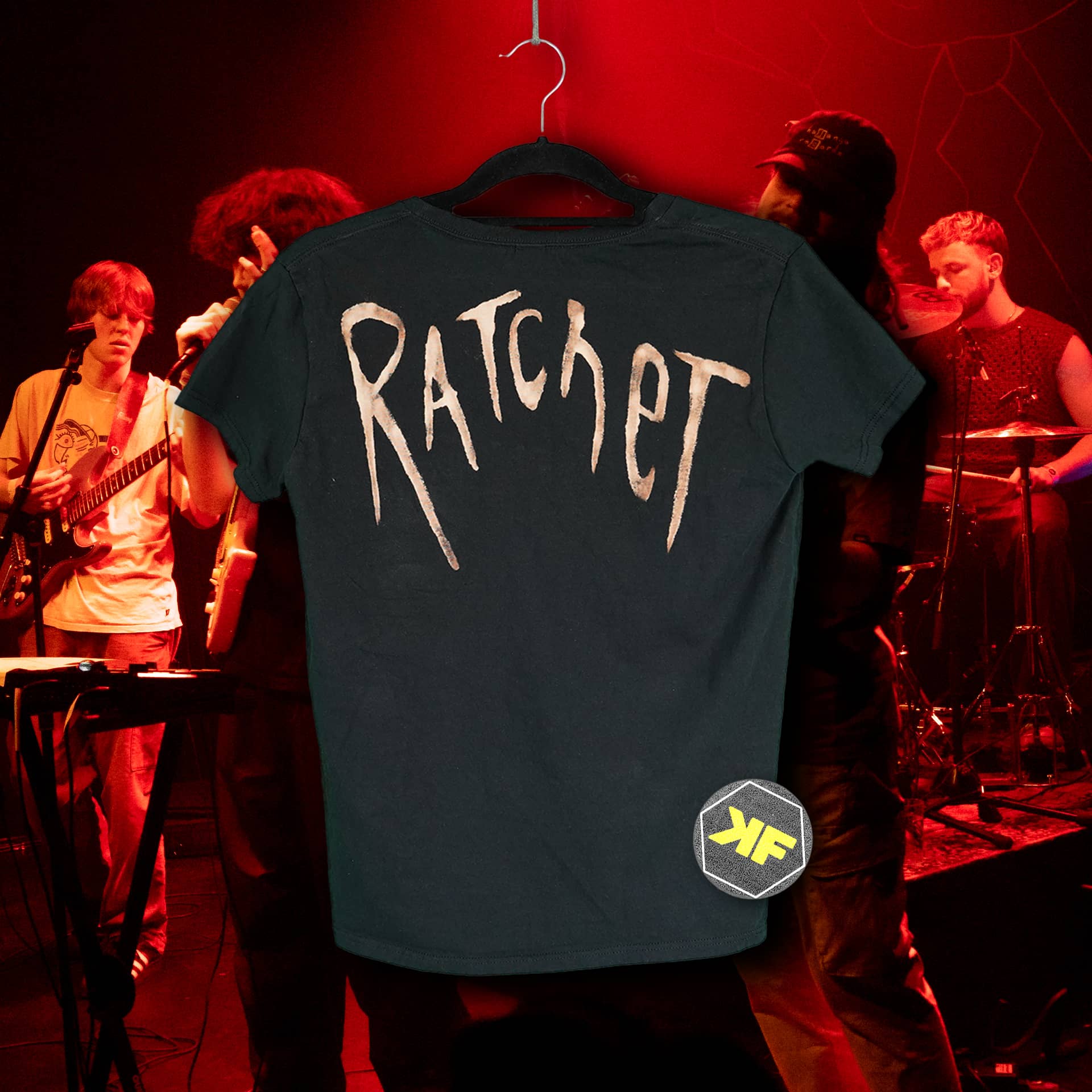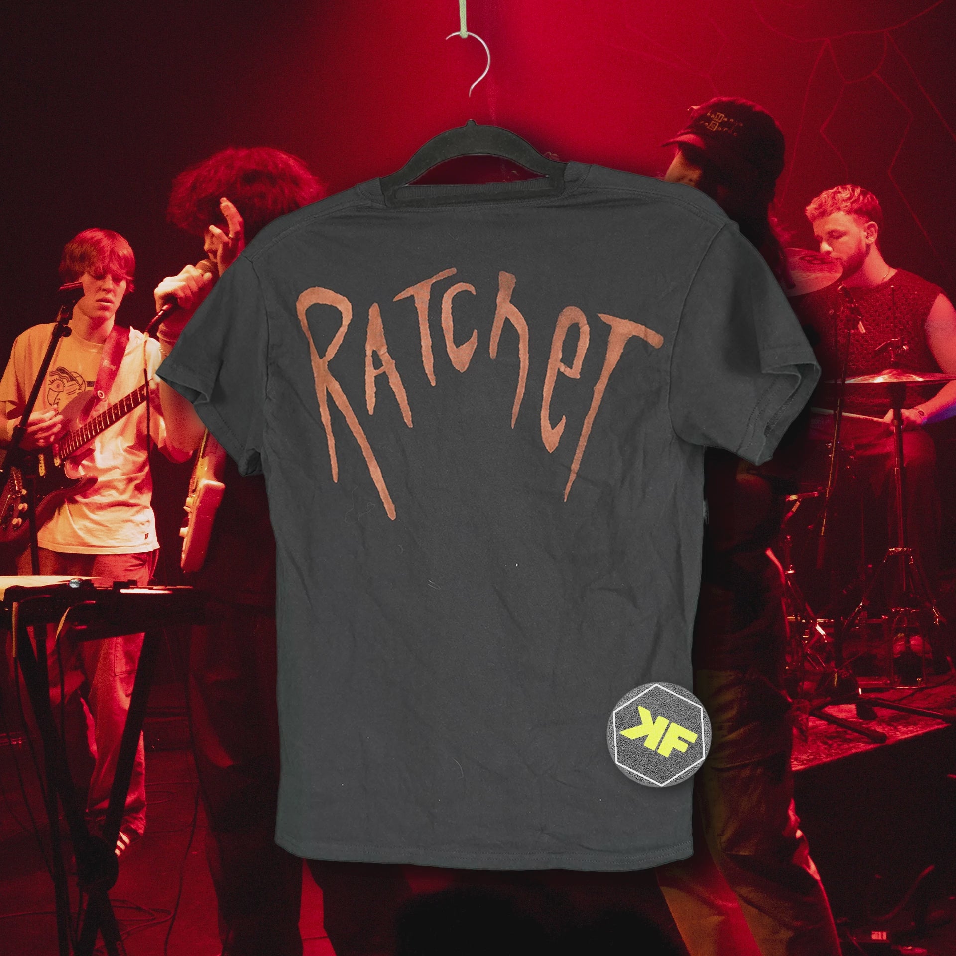 Limited edition: Ratchet's handcrafted and uniquely designed T-shirt! This T-shirt was originally custom-made for Ratchet's performance at 'De Kroepoekfabriek (Vlaardingen 29-03-2024),' handled by him and his team, capturing the spirit of that unforgettable night! A one-of-a-kind black 'heavy cotton' T-shirt that can withstand almost any situation! It features an O-neck fit with both Ratchet's signature logo and a unique design. Note: No special laundry needs, but the overall fit will remain longer with 30°C washes!