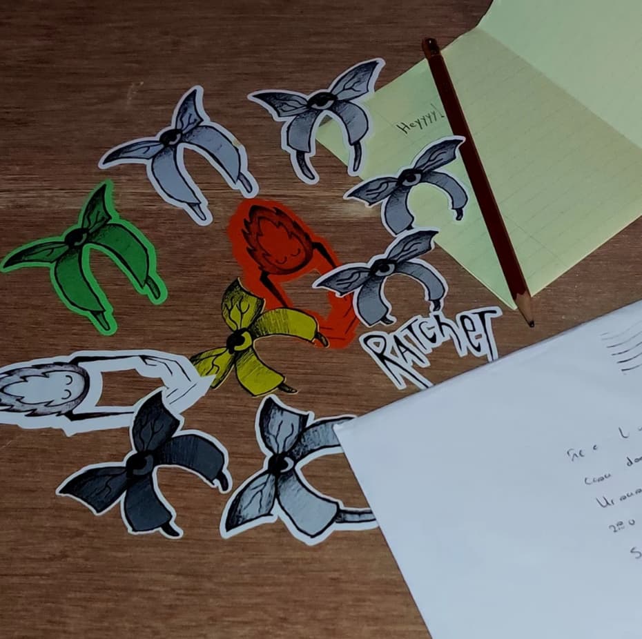 This letter will contain 10 handcrafted stickers and a handwritten letter by Ratchet! The stickers are made during our first testrun (Batch 1) and consist out of transparant and non transparant stickers (the coloured ones).